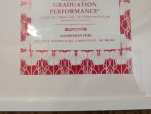My first step into creating this design took place in a small room on the second floor of the new building in Peckham, and it involved an intense research into an archive made of posters, pictures, letters, and programmes from eight decades of Mountview’s history. Each of these elements represented thousands of students and people who, over the years, have recognised Mountview not only as a place where they can study and grow, but an opportunity where their dreams and aspirations could become a reality in the UK theatre industry and worldwide.