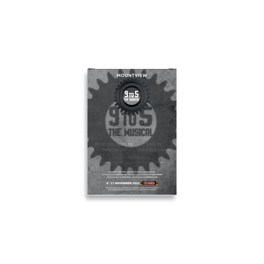 A2 poster of Mountview's 2023 production of '9-5'. Museum-quality poster made on thick matte paper.