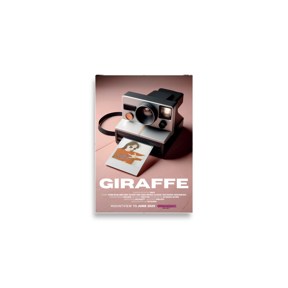 A2 poster of Mountview's 2025 film 'Giraffe'. Museum-quality poster made on thick matte paper.