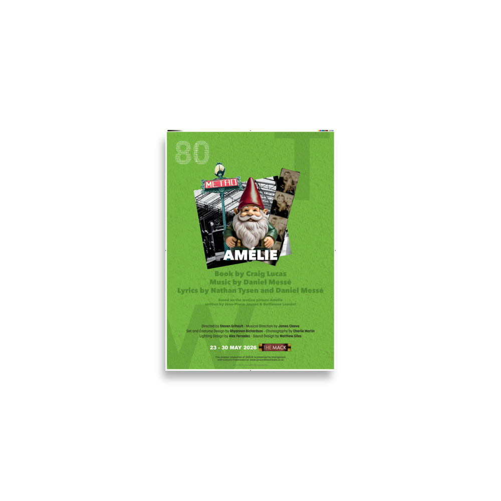 A2 poster of Mountview's 2026 production of 'Amelie'. Museum-quality poster made on thick matte paper..