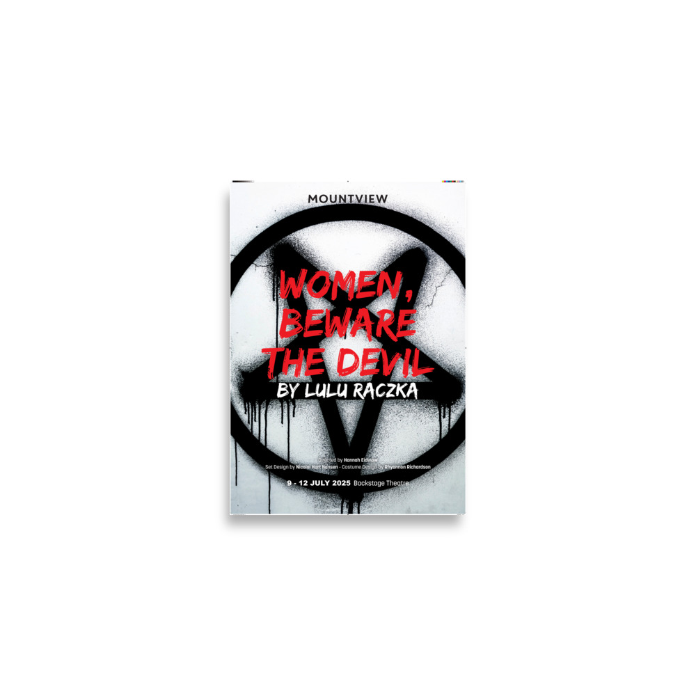 A2 poster of Mountview's 2025 production of 'Women Beware the Devil'. Museum-quality poster made on thick matte paper.