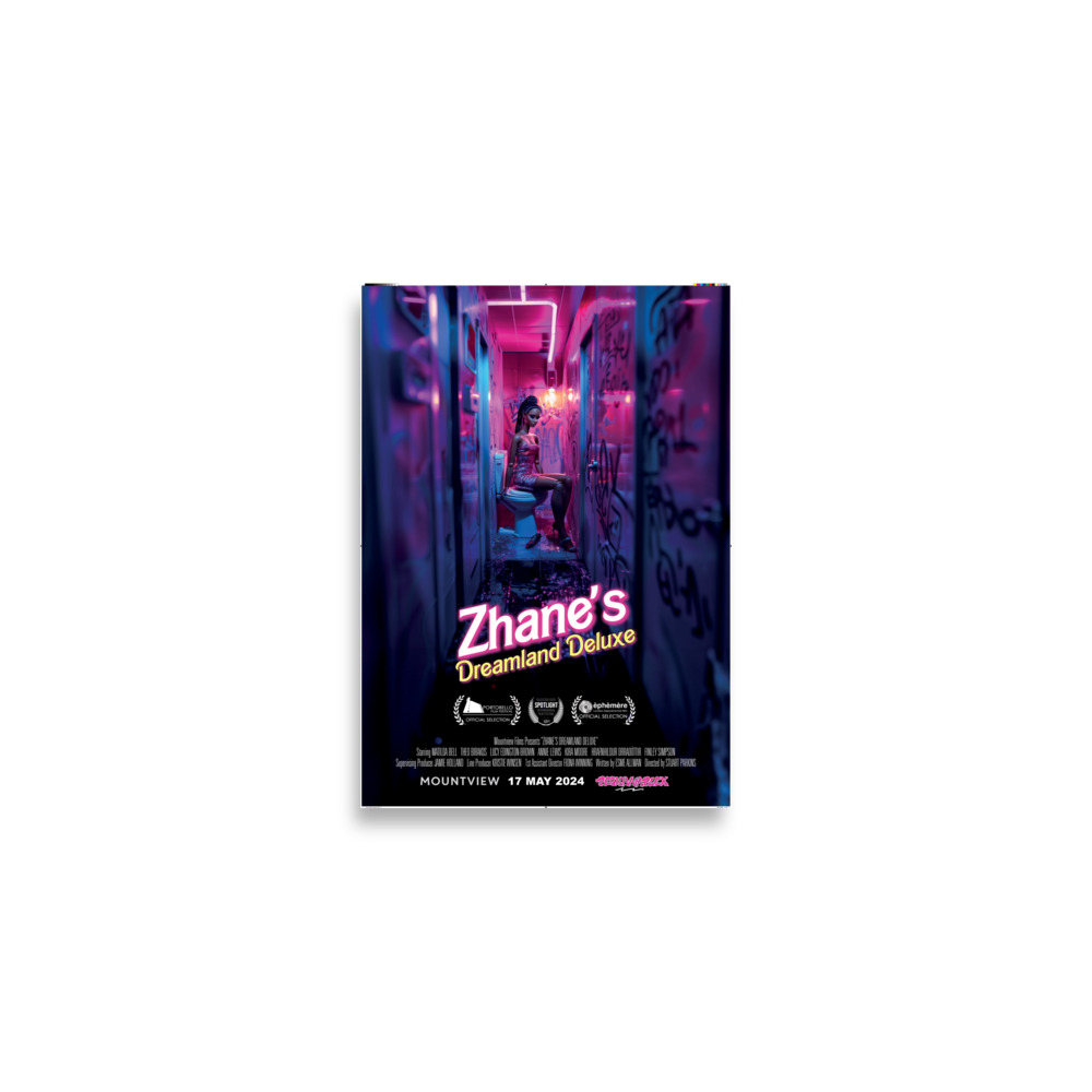 A2 poster of Mountview's 2024 film 'Zhane's Dreamland Deluxe'. Museum-quality poster made on thick matte paper.